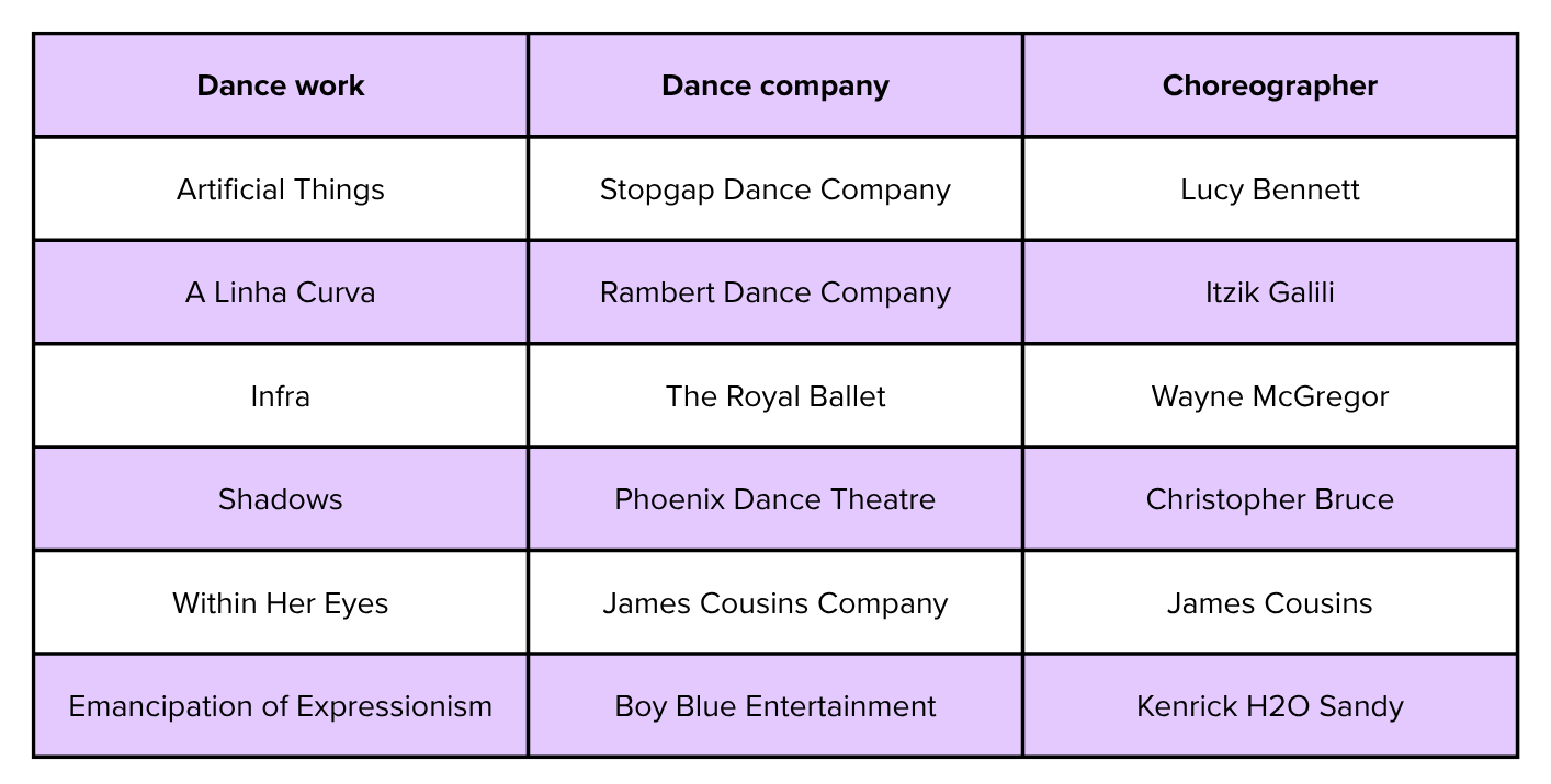 The GCSE Dance Anthology provides the focus for learning how to critically appreciate professional set works. The anthology contains the following professional set works: