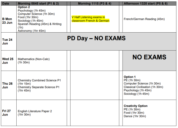 Exams in the hall will start at 8.45am and 13.20pm. Therefore, you need to use lockers and organise yourself to be in the Sports hall ready BEFORE these times.