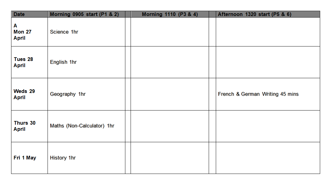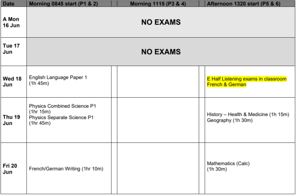 Exams in the hall will start at 8.45am and 13.20pm. Therefore, you need to use lockers and organise yourself to be in the Sports hall ready BEFORE these times.