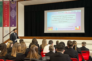 Students engaging in a diverse range of workshops and concise taster sessions, orchestrated by the University of Portsmouth, students are provided with a glimpse into the potential trajectory of their language studies at an advanced level. This encompasses immersive participation in interactive sessions held within the specialised Interpretation Training Suite.