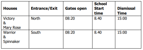 Year 7 and 11 – Arrival at school 8:20 – 8:40am – Year 7 go to main hall and Year 11 go to Tutor.