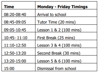 Year 8, 9 and 10 – Arrival at school 10:45 – 11am for breaktime then go to Tutor for lesson 3.
