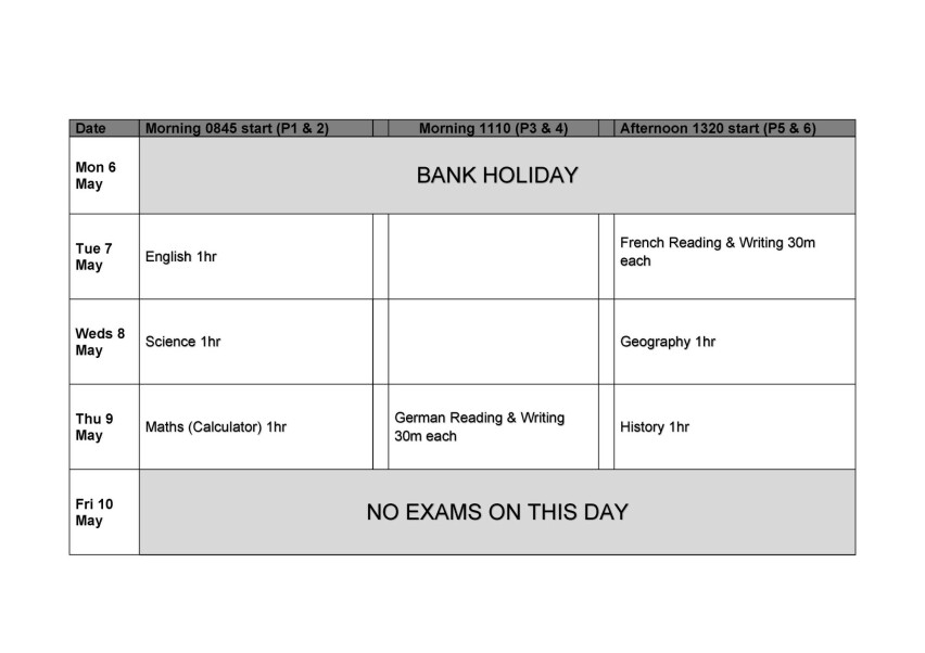 Exams in the hall will start at 8.45am and 13.20pm. Therefore, you need to use lockers and organise yourself to be in the Sports hall ready BEFORE these times.