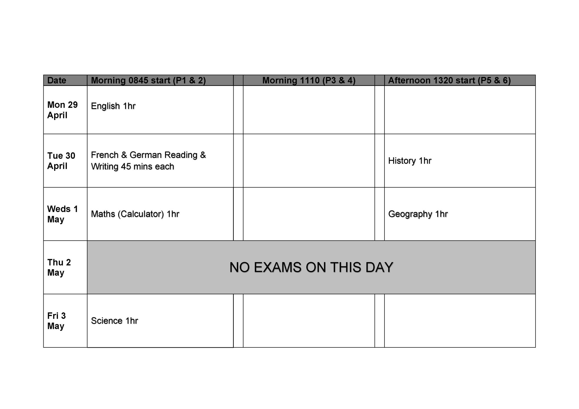 No bags/coats etc. are to be brought into the Sports Hall prior to your exams (these must be left in your locker). If bags/coats are left outside the Exam room we cannot be held responsible for any loss.